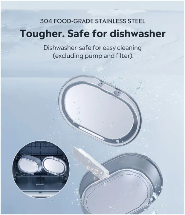 Some plastic materials are known to be rich in chemical leachables, such as BPA pellets, which can be extremely harmful to your cat’s health. That is not true about stainless steel, which is a metal with no extra chemical exposure. As a result, drinking water from stainless steel water reservoirs is safe for your pets, not to mention its beneficial action. Our ancient ancestors used to drink water from stainless steel pots and that is the biggest proof of their usefulness for the enhancement of the health of many living organisms dependent on the presence of clear water.